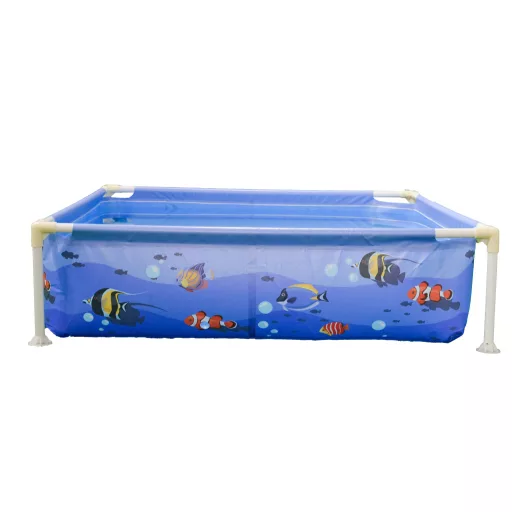 Négyszögletes, fémvázas, mini medence a gyerekeknek, melyet megbízhatóság, biztonság tartósság jellemez.