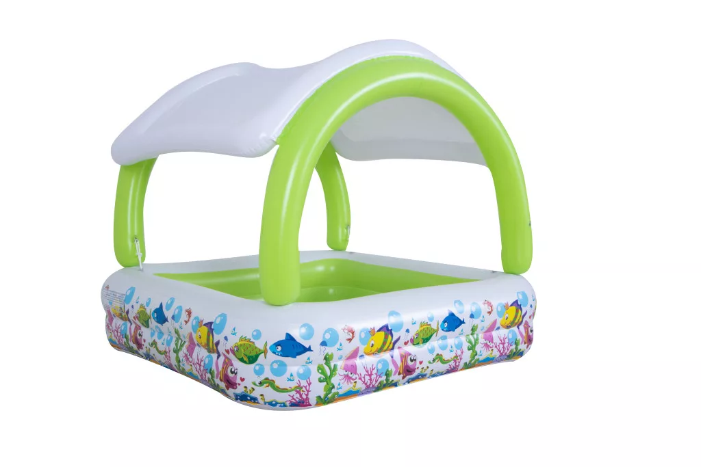 A beépített napellenző védelmet nyújt az erős napsugarak ellen, így a kicsik biztonságosan pancsolhatnak. A 240 literes (63 gallon) vízkapacitásnak köszönhetően kellően mély a frissítő fürdőzéshez, de akár labdamedenceként is használható.