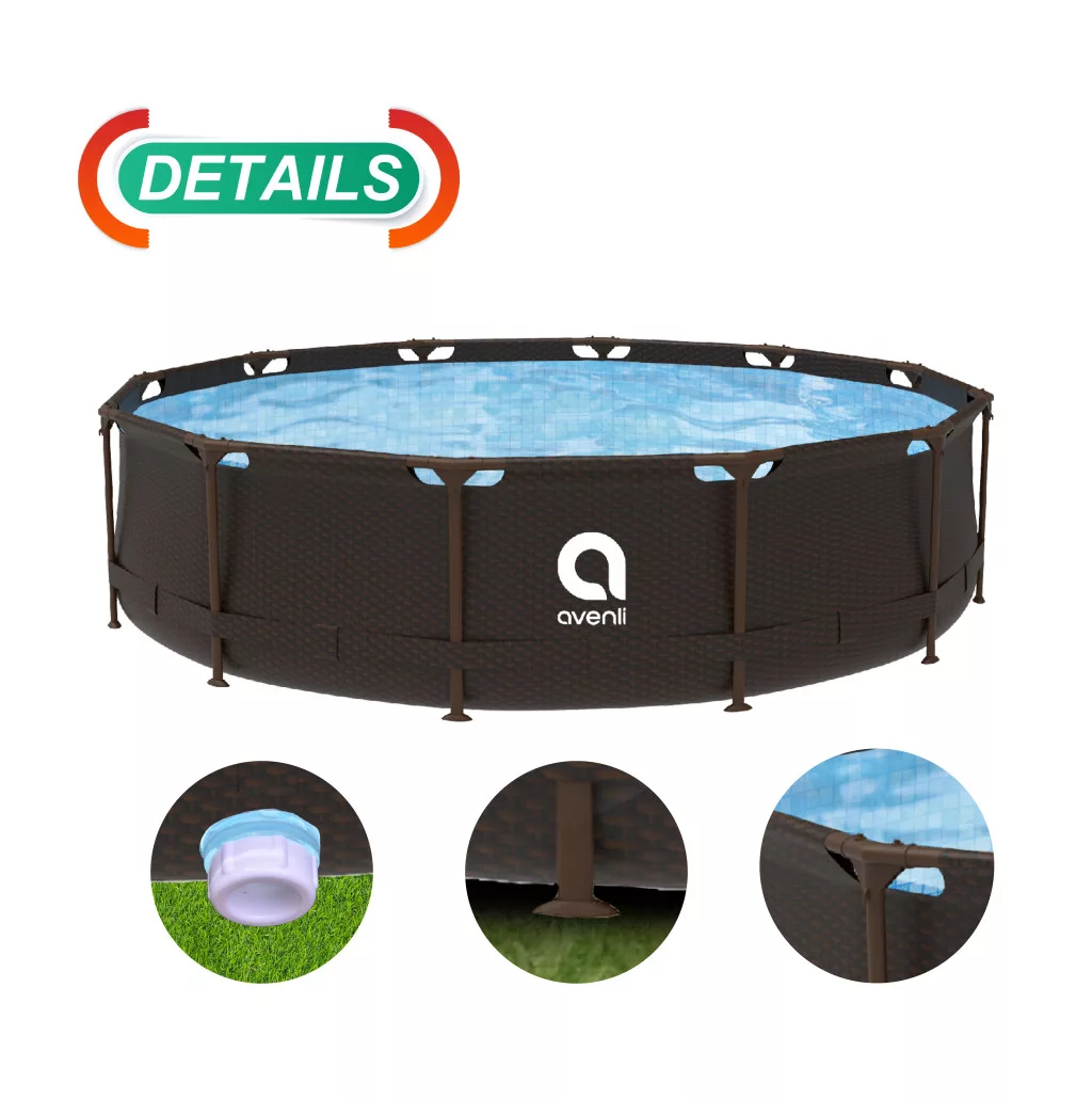 Az Avenli föld feletti medence stabil és tartós a robusztus acélváznak köszönhetően, amely akkor is stabilitást biztosít, ha nagy mozgás van a vízben. Az oldalfalak és a talp tartós, strapabíró anyagból készülnek, és hosszú élettartamot garantálnak. Az acélrúdváz megkönnyíti az egyszerű és gyors összeszerelést.
