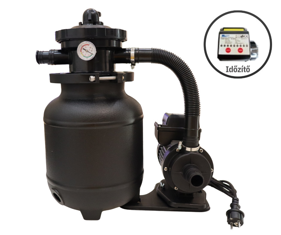 Egy 4m3/óra teljesítményű, időzítővel felszerelt homokszűrős vízforgató szett, amely ideális kisebb és közepes méretű kerti medencék tisztán tartására. A beépített időzítő lehetővé teszi a szűrés automatizálását, így biztosítva a folyamatos, tiszta vizet. Kompakt kialakítású, hatékony megoldás a medence karbantartásához.