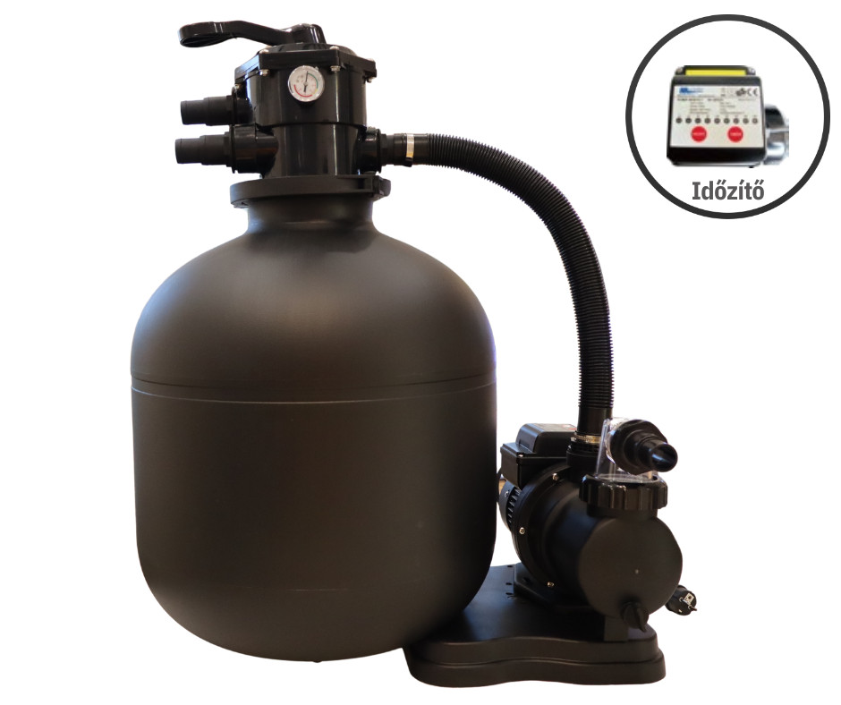 A Super Black 8 Plus egy 8 m3/óra teljesítményű, időzítővel felszerelt homokszűrős vízforgató szett, amelyet medencék hatékony tisztítására terveztek.